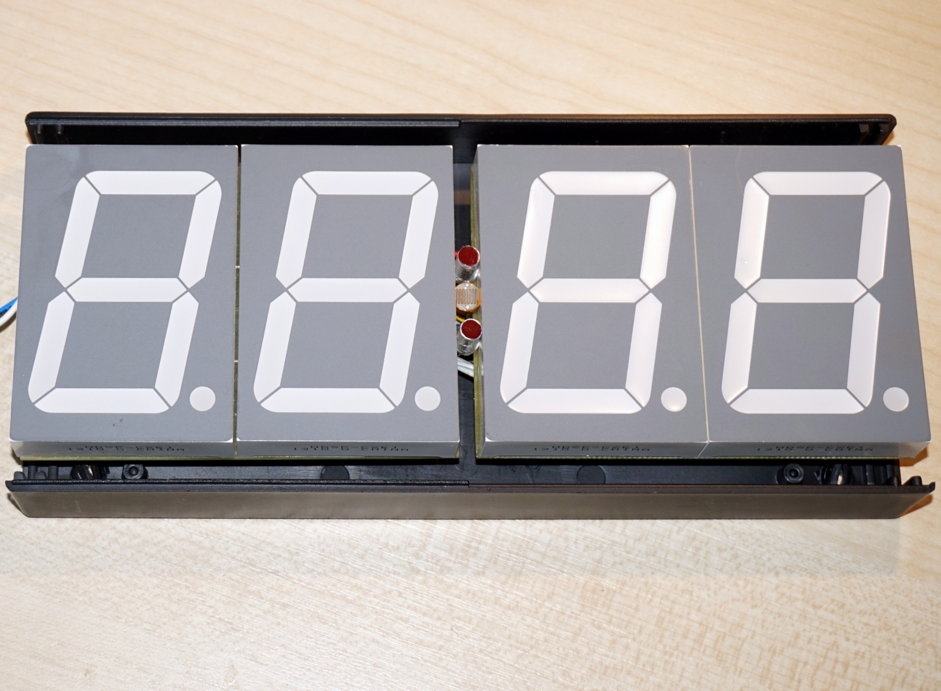 What I did more, was the Dim effect. The brightness of the digits depends of the ambient lighting. For now it is in two steps only. But, because I use an analog input, it is possible to make the brightness of the digits to follow the ambient light intensity fluently.